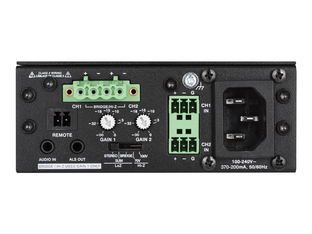 - Configurable for 1 x up to 75 W output for Hi-Z or