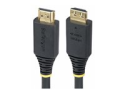 The StarTech.com HDMI2-CABLE-GRIP-7M is designed for longevity and performance, making it a choice for connecting displays, monitors, and TVs. This high-speed HDMI cable features a robust 6 mm diameter and is crafted with aluminum mylar foil shielding, ensuring protection against electromagnetic interference (EMI). With a strain relief feature and gripping connectors, the cable provides a secure fit for reliable connections. It supports an 18 Gbps data rate, enabling video resolutions up to 4K at 60 Hz and 1440p UWQHD at 144 Hz, along with support for Dolby TrueHD and Dolby Atmos audio formats. With a lifespan of up to 10,000 insertions and 2,000 bends, this cable is built to withstand frequent use while maintaining performance.