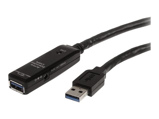 Shielded - Male to Female USB USB 3.1 Gen 1 Type A (5Gbps) Extender (USB3AAEXT5M) - USB-forlengelseskabel - USB-type A (hann) til USB-type A (hunn) - USB 3.0 - 5 m - aktiv - svart - for P/N: PEXUSB3S2EI, PEXUSB3S42, PEXUSB3S7, ST7300U3M, ST7300USB3B, SVA5H2NEUA, USB3SAA3MBK