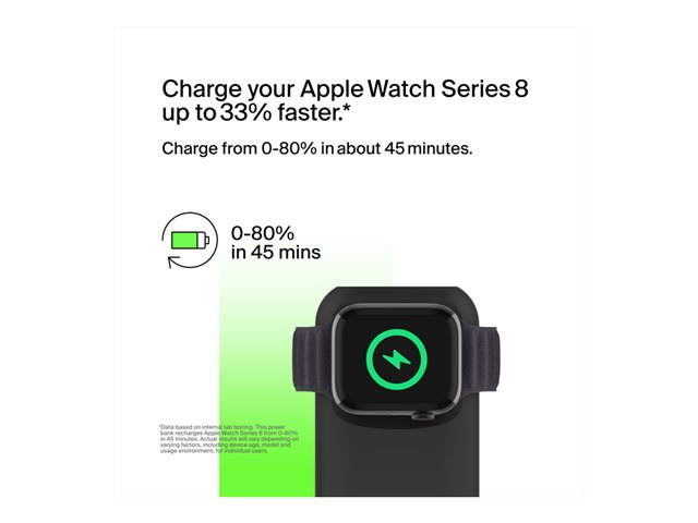 - Allows pass-through charging so you can continue to wirelessly charge your Apple Watch when charging the power bank