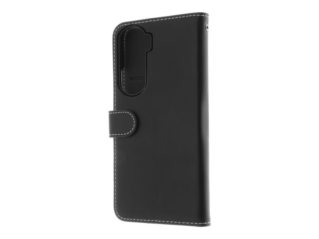 Stylish leather flip case with three credit card slots and a pocket.