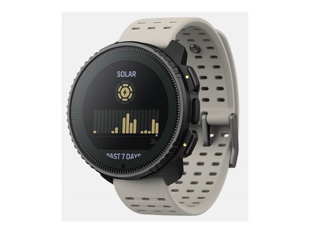 The Suunto Vertical sport watch is designed for athletes and adventurers seeking a durable device that keeps pace with their active lifestyle. With a robust glass fiber reinforced polyamide case and sapphire glass protection, it stands up to the toughest conditions, water-resistant up to 100 m. It features a comprehensive suite of sensors, including an altimeter, barometer, and digital compass, alongside advanced GPS/GLONASS/Galileo/BeiDou/QZSS navigation capabilities for precise tracking and route planning.