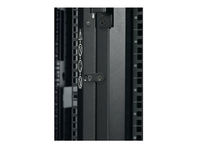 - Mounts two APC metered PDUs in one rear channel;