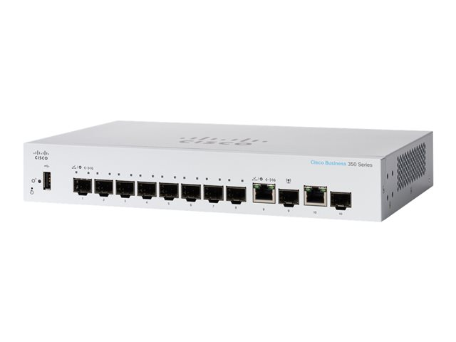 The Cisco Business CBS350-8S-E-2G switch is part of the fully managed switch line that delivers reliable and secure connectivity for small business networks. These switches accelerate your digital transformation by delivering full Layer 2/3 capabilities, intuitive web dashboard, advanced networking features, and PoE+ support.