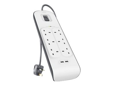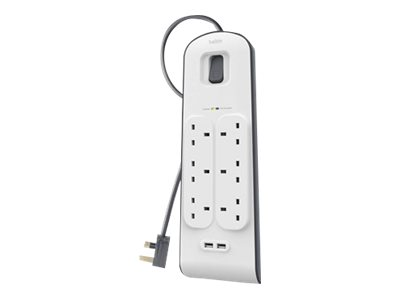 - Six-outlet protection with two USB ports