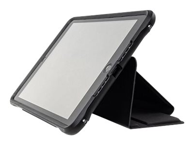 - Two-panel folio rotates and folds into multi-position stand