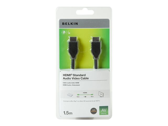 Belkin Standard - HDMI-kabel - HDMI hann til HDMI hann - 1.5 m - dobbeltisolert - svart - 4K-støtte F3Y017BT1.5MBLK