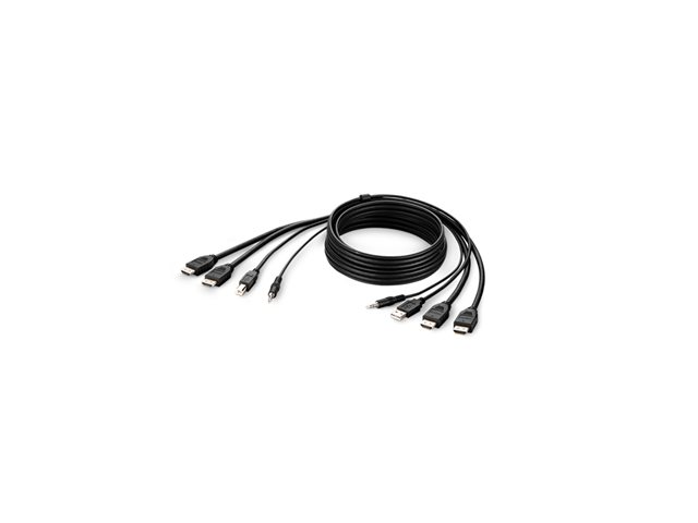 Belkin Secure KVM Combo Cable - Video- / USB / audio-kabel - TAA-samsvar - USB, minijakk, HDMI (hann) til USB-type B, minijakk, HDMI (hann) - 3.05 m - passiv, 4K-støtte - svart