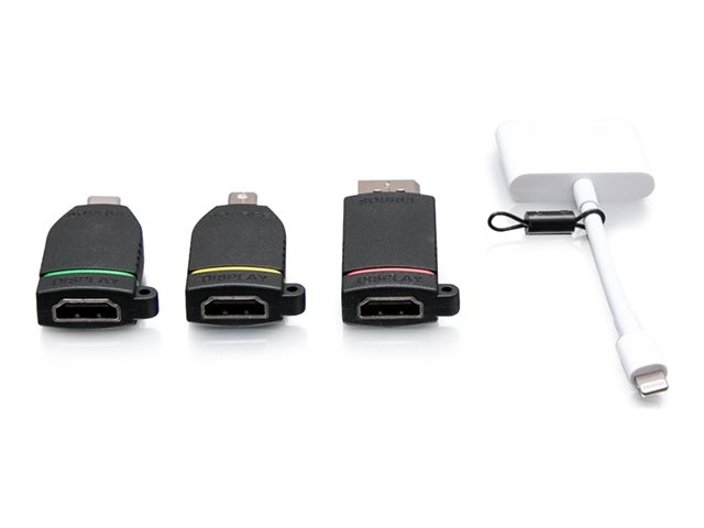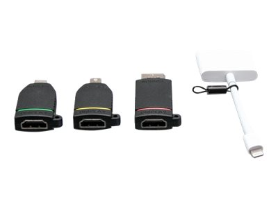 C2G Retractable Universal Mount 4K HDMI Adapter Ring with Color Coded Mini DisplayPort, DisplayPort, USB-C, and Lightning - Videoadaptersett - svart - 4K-støtte