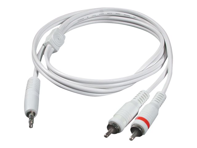 This stereo to RCA stereo audio cable from C2G are specifically designed to connect a PC sound card, portable CD player, MP3 player, iPod or any mini-stereo audio device with 3.5mm jacks to other audio devices with RCA audio jacks. This cable features two 26-gauge oxygen-free copper conductors, a drain wire, and an aluminum foil shield to reject noise.
