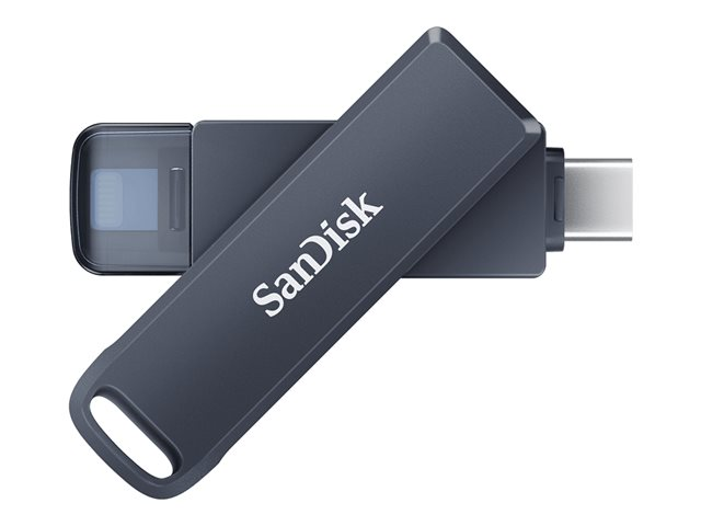 SanDisk Phone Drive - USB-flashstasjon - 256 GB - USB-C / Lightning - metallisk sky SDIXD0N-256G-GN6NE