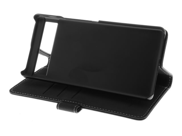 Insmat Exclusive - Lommebok for mobiltelefon - ekte skinn, polykarbonat, kartong+papir+aluminiumsfolie - svart - for Google Pixel 7a 650-3210