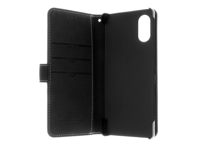 Insmat Exclusive - Lommebok for mobiltelefon - ekte skinn, termoplast-polyuretan (TPU), kartong+papir+aluminiumsfolie - svart - for Sony XPERIA 5 V 650-3211
