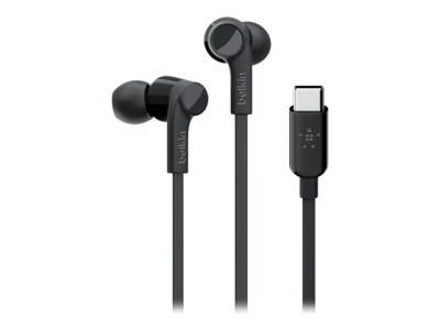 Belkin ROCKSTAR - Ørepropper med mikrofon - i øret - kablet - USB-C - lydisolerende - svart