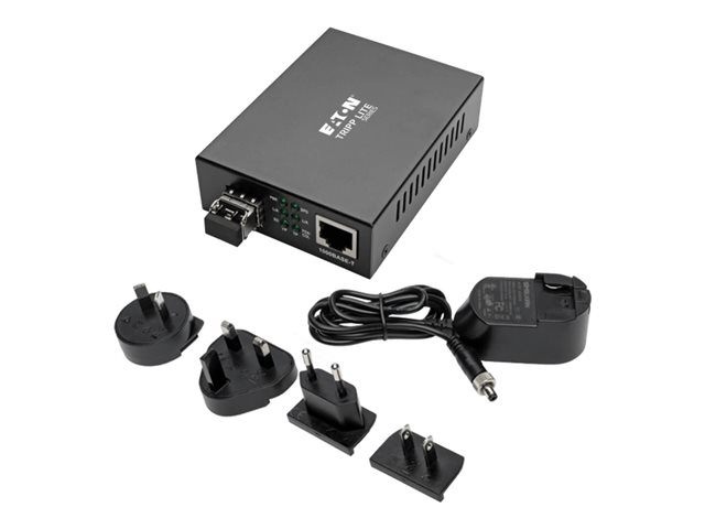Eaton Tripp Lite Series Gigabit Multimode Fiber to Ethernet Media Converter, 10/100/1000 LC, International Power Supply, 850 nm, 550 m (1,804 ft.) - Fibermedieomformer - 1GbE - 10Base-T, 100Base-TX, 1000Base-T - RJ-45 / LC multimodus - opp til 550 m - 850 nm