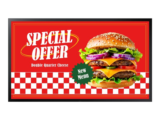 Samsung OH55DX er en allsidig 55-tommers kommersiell skjerm designet for digital skilting. Den er utstyrt med SMART Signage-plattformen og drives av en robust 10. generasjons SoC, noe som sikrer pålitelig drift 24 timer i døgnet. Skjermen er fullt synlig selv med polariserte solbriller, noe som gjør den egnet for utendørs plassering. I tillegg forbedrer praktiske funksjoner som Auto Source Switching & Recovery og MagicInfo S10 Player brukervennligheten og innholdshåndteringen, mens kompatibilitet med Microsoft 365 gir sømløs tilkobling for varierte innholdsbehov.